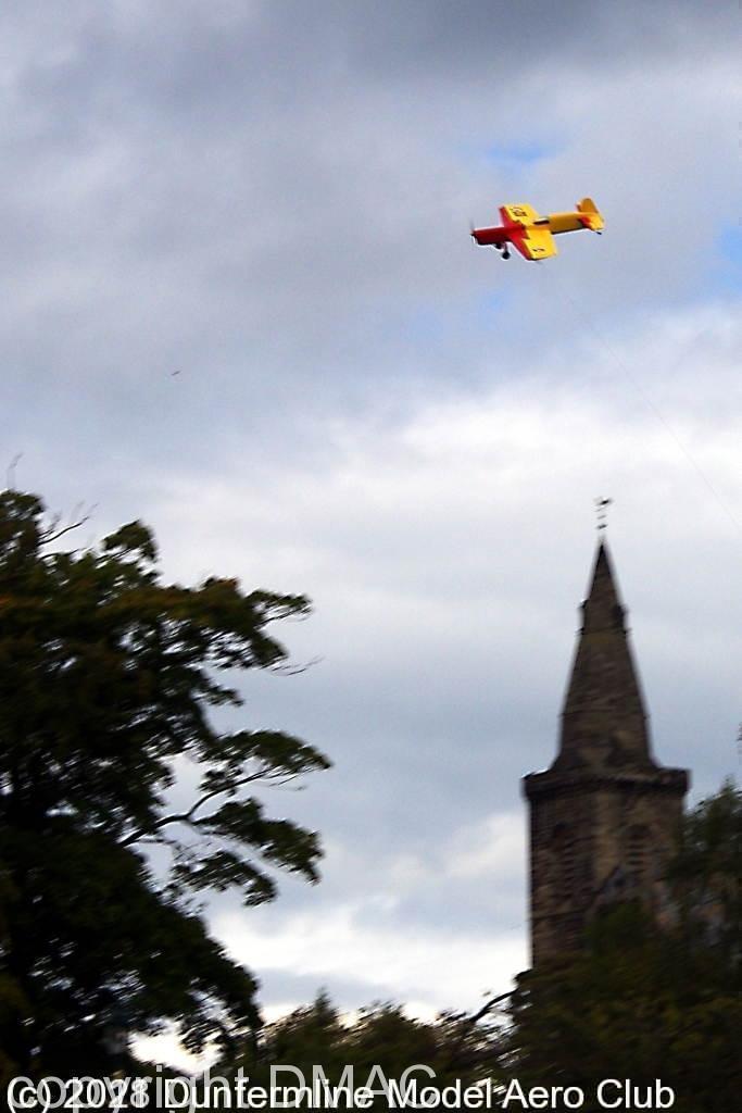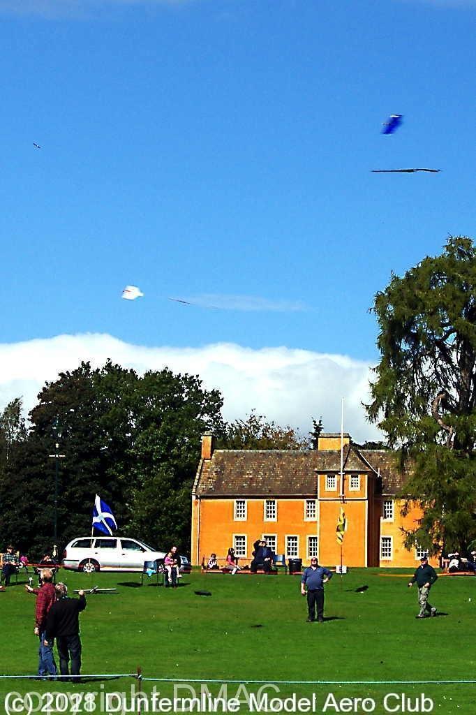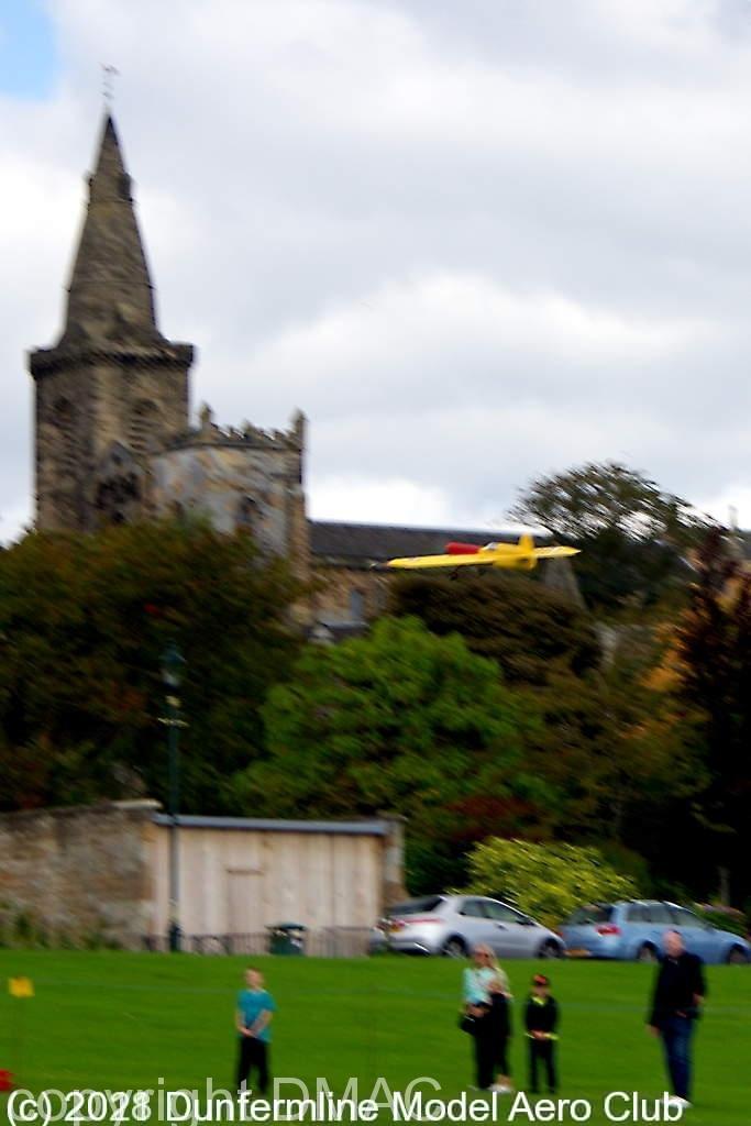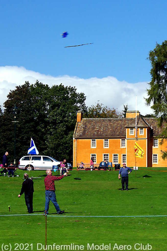 Sport for All 2014 CL aerobatic model above Dunfermline Abbey CL aerobatic model passes in front of Dunfermline Abbey CL aerobatic model against cloud CL aerobatic model with the Glen museum in the background Two CL combat models flying against a blue sky CL Combat in Pitencrief park CL Combat in Pitencrief park The DMAC tent in the Glen A selection of FF models